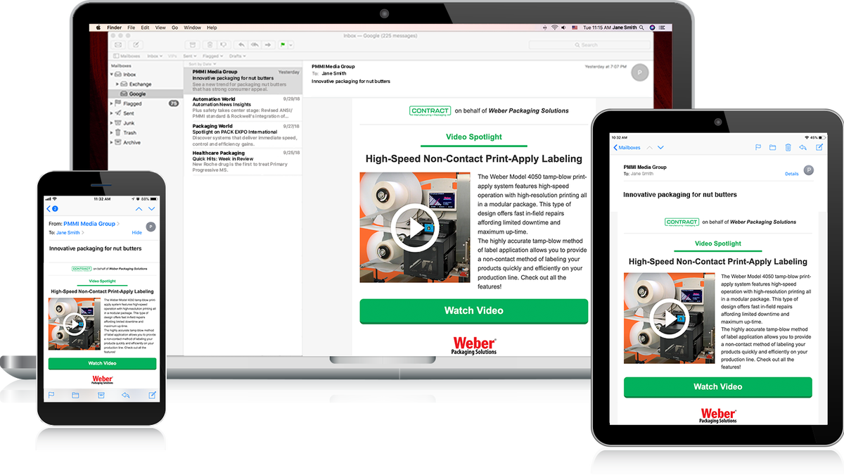 Our e-blast templates accommodate videos and white papers and offer third-party credibility with PMMI Media Group branding. Connect with customers and prospects via a dedicated message to our e-database.